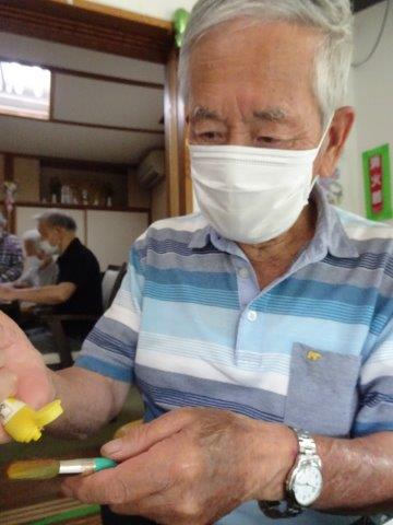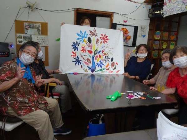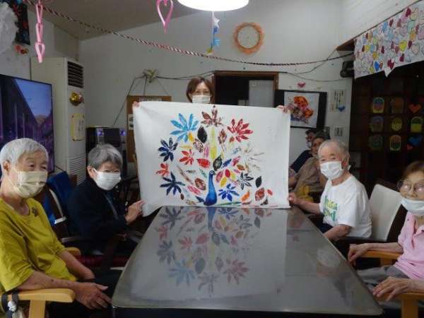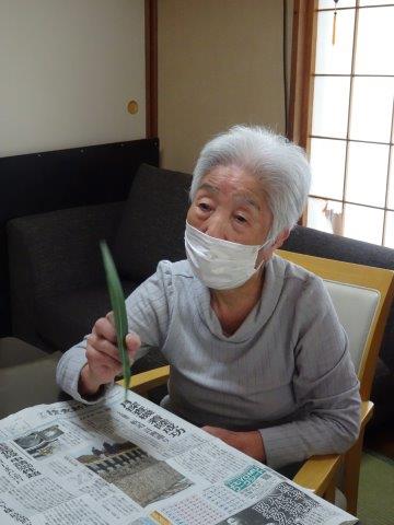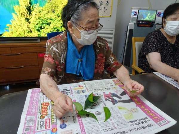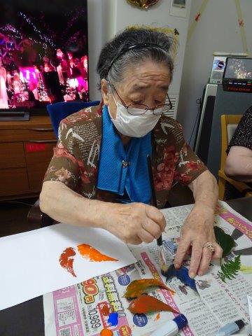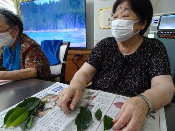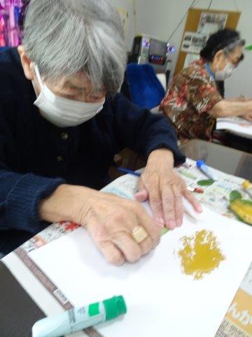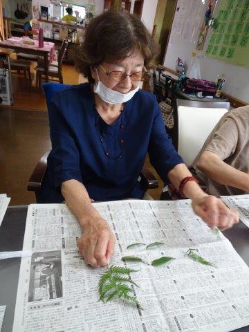 レクリエーションでは葉っぱを使って何かしてみようということで・・・・