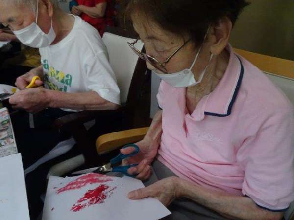 先程かたどった葉っぱを、みんなで一緒にカット・カット✂✂