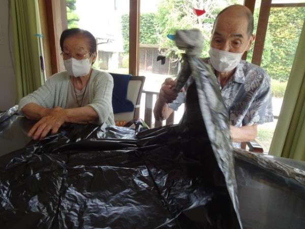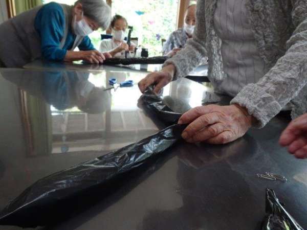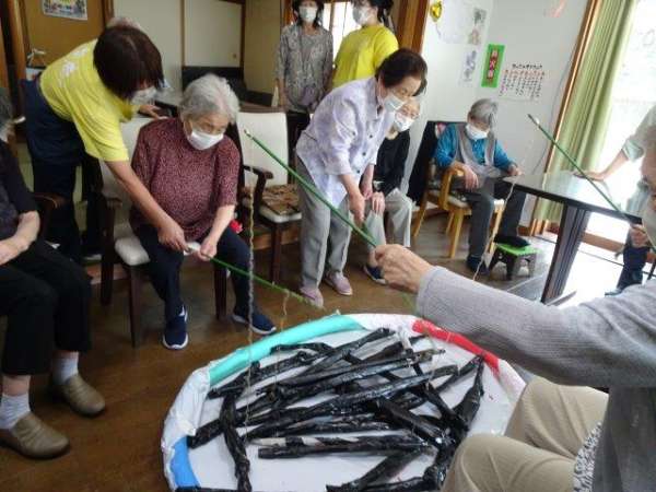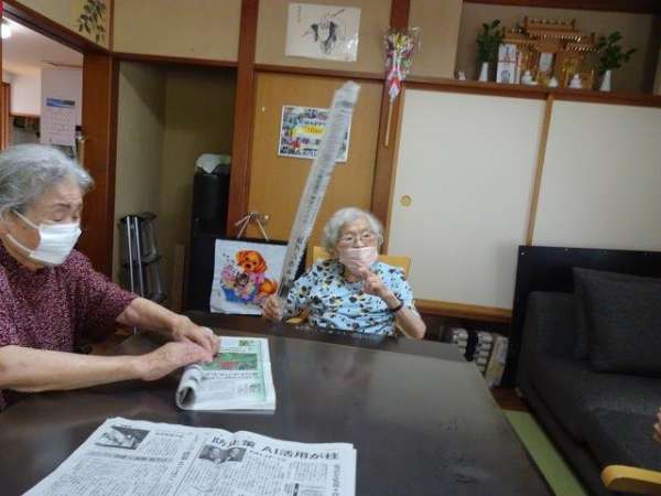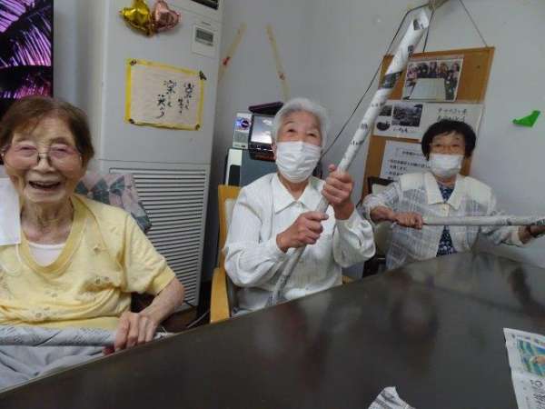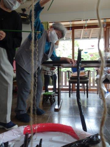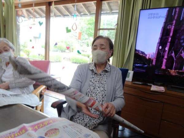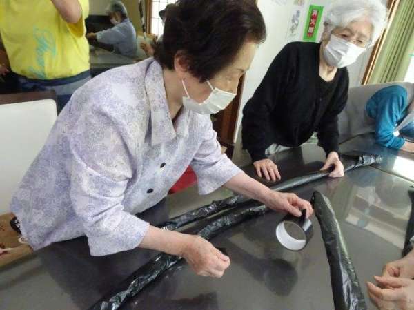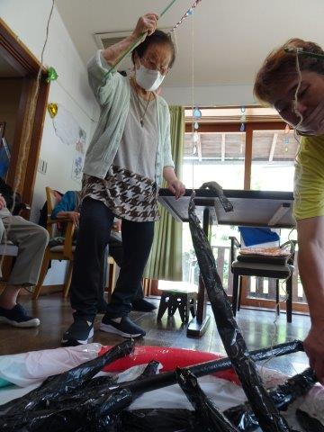 新聞紙📰でウナギの形を作り・・・・(´∀`*)ウフフ