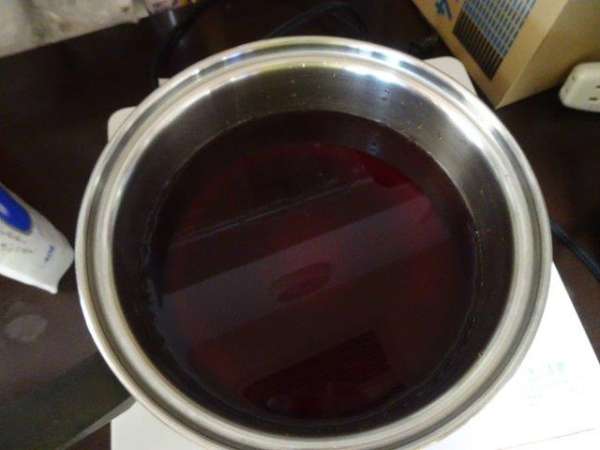 👆コチラの液は、赤玉ねぎの皮を煮詰めた液です