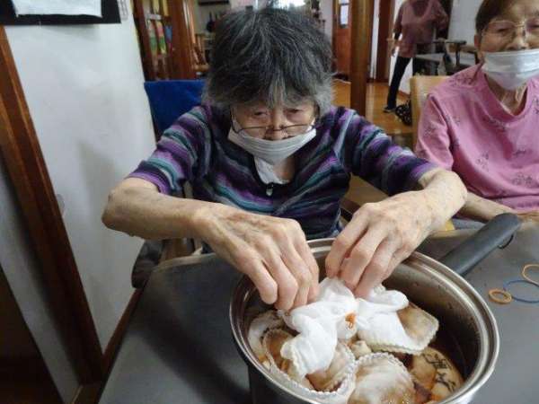 お母さんにお手伝いをして頂き、水洗いしていただきました