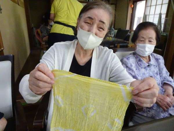 輪ゴムでくくったハンカチを玉ねぎ液に投入します