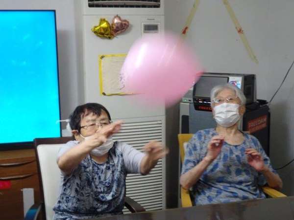 今日のレクリエーションは、風船です。