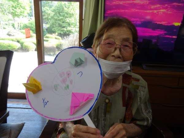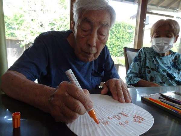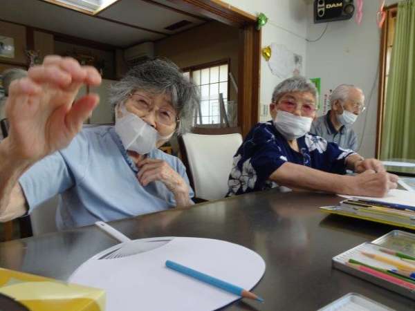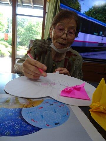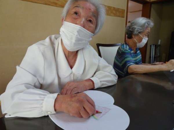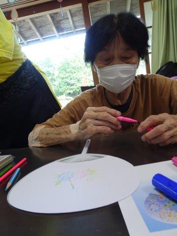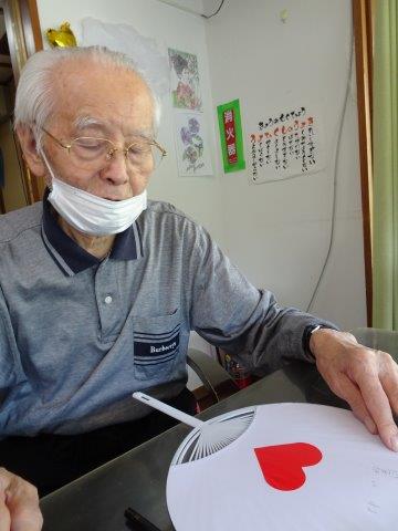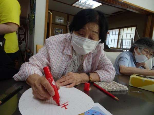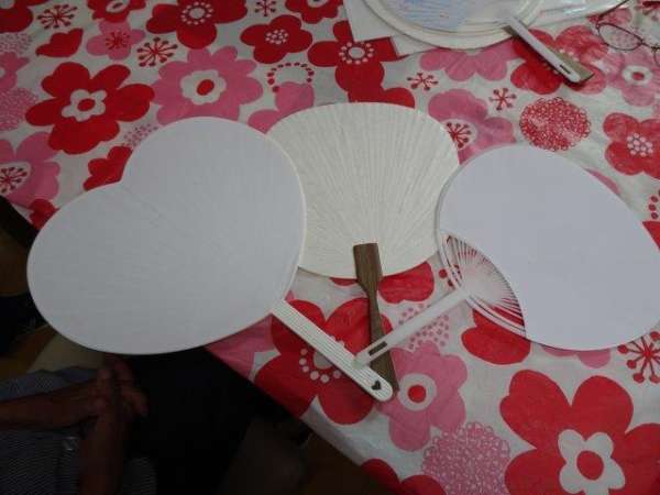お母様とお父様には、真っ白いうちわに絵を描いたり、折り紙を貼り付けてたりして、デコレーションをしてもらいました。