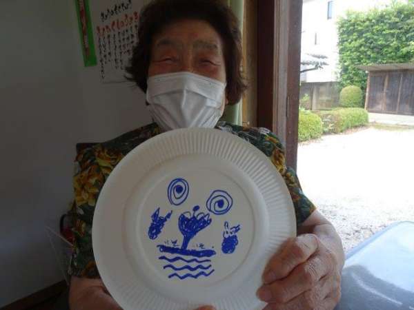 何にもない紙皿では、味気ないので皆様に絵や模様を書いて頂きました