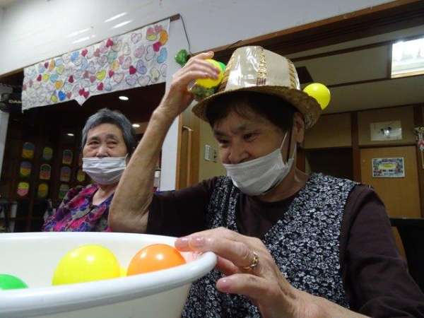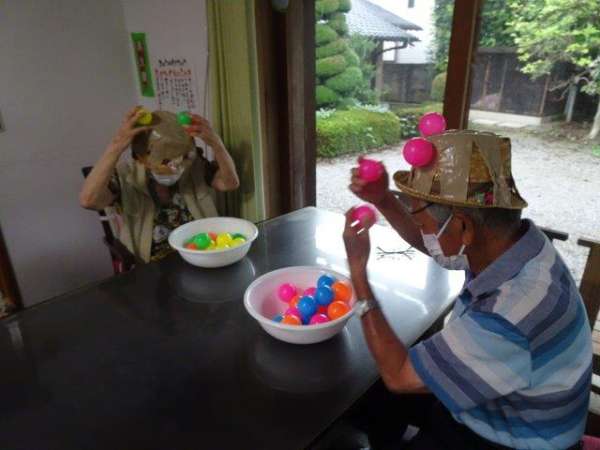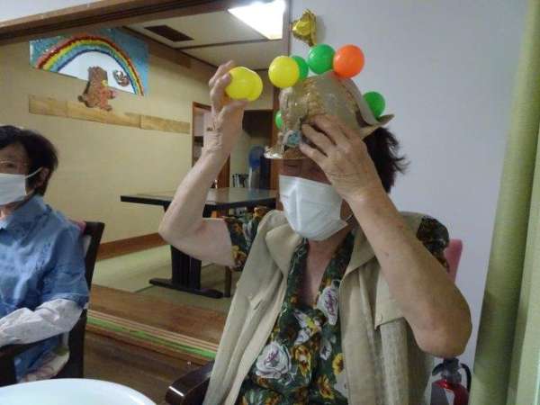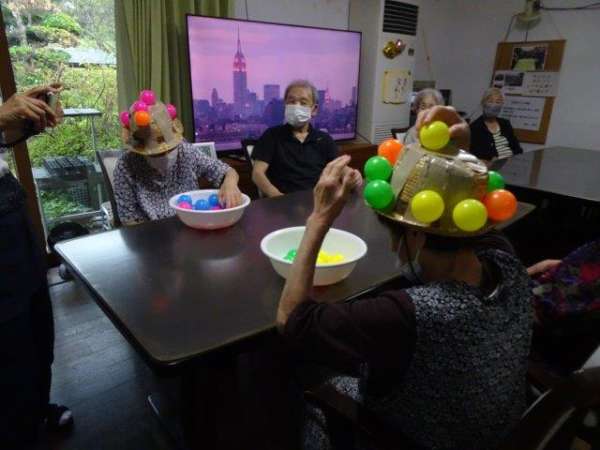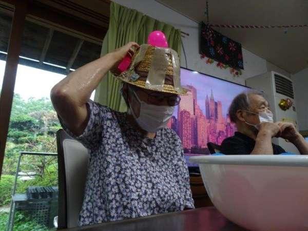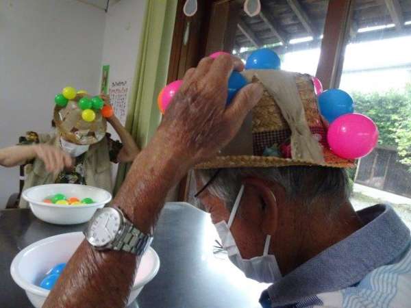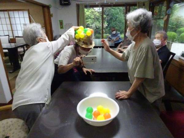 このように、頭に被った帽子に自身でボールをくっつけていくという、簡単ルールのゲームなんです