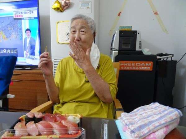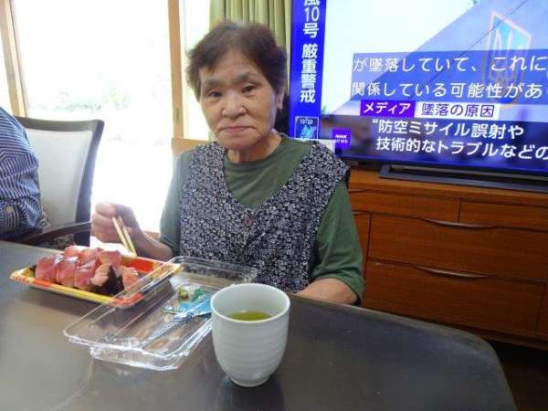 いつも毎日しているラジオ体操から始まりお昼は豪華なお寿司!