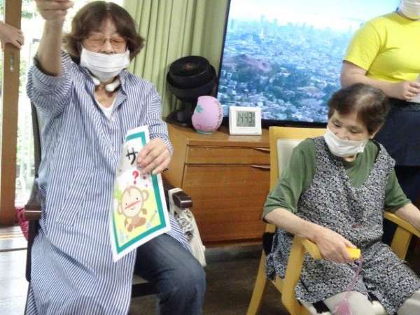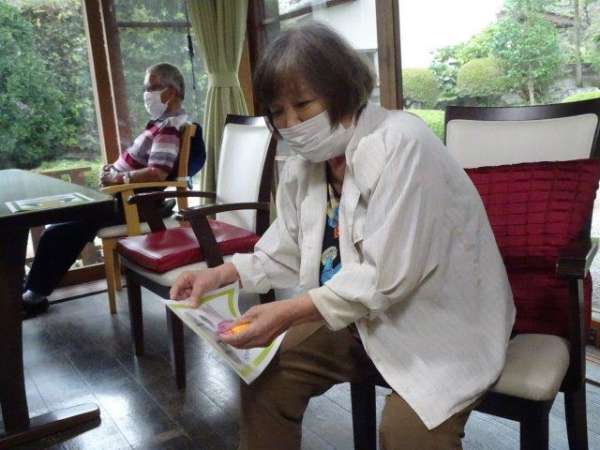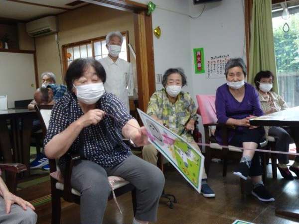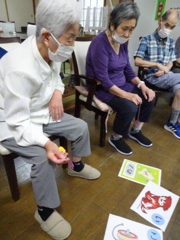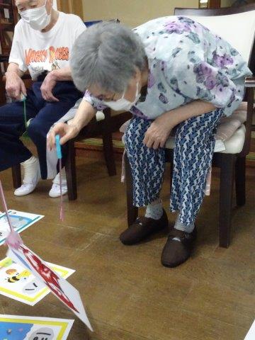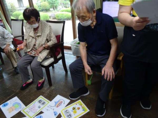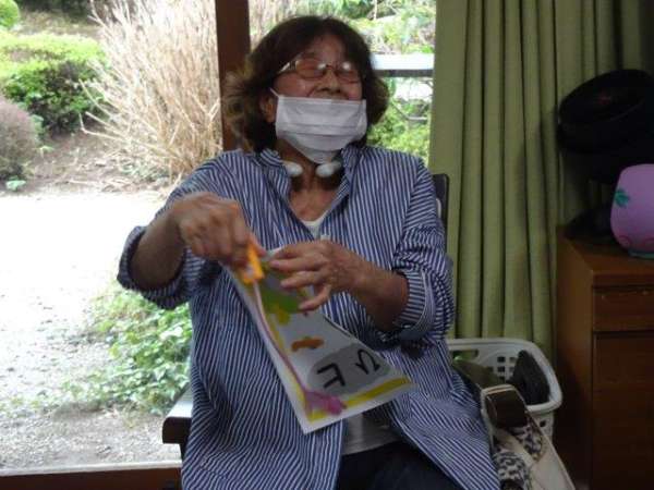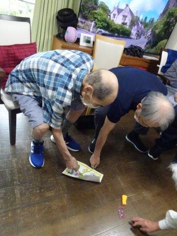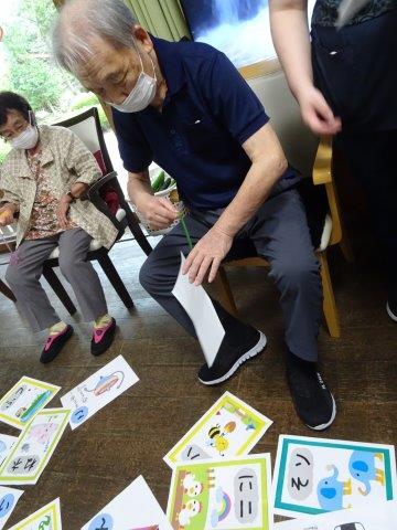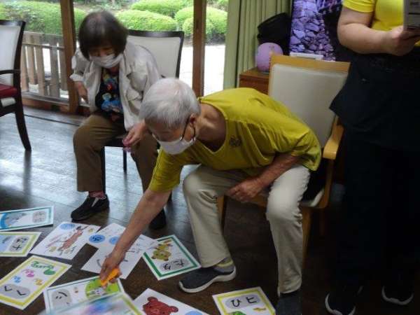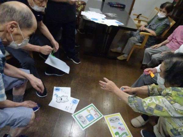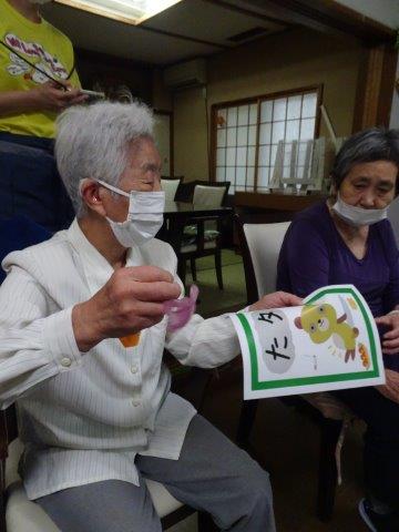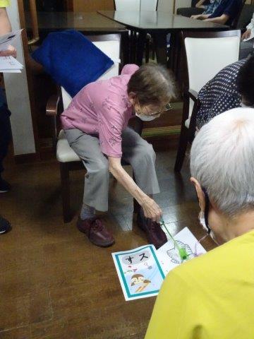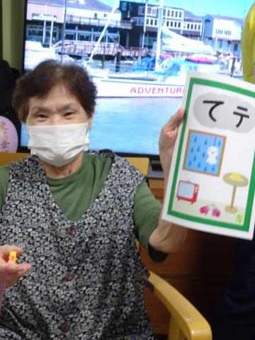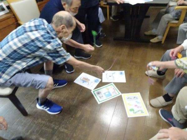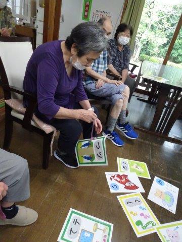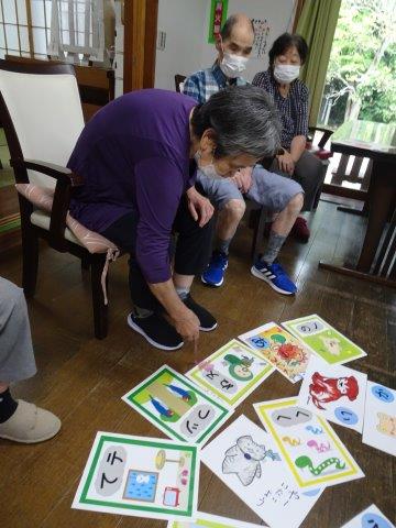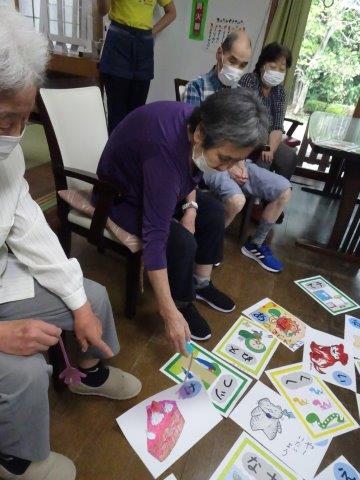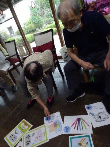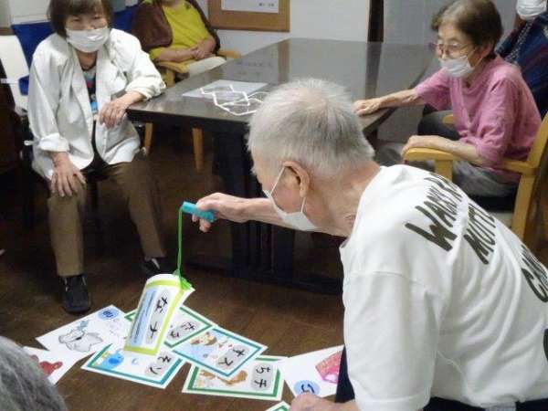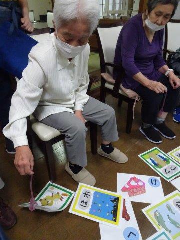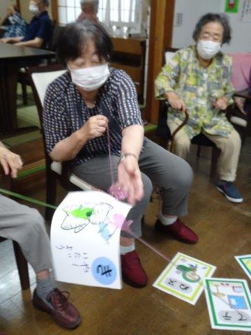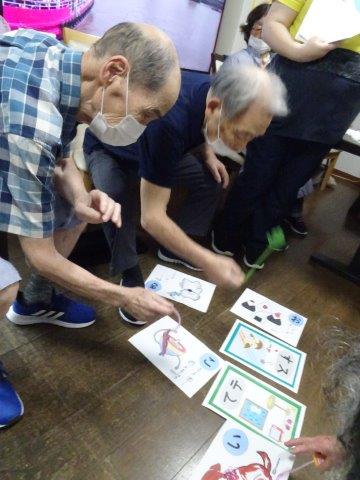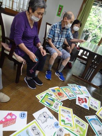 午後のレクの時間では、前作ったかるたでかるた釣りをしました。