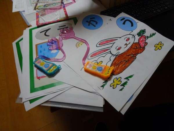 かるたと手が伸びて紙にくっついてしまうおもちゃを使ってやっていきます!