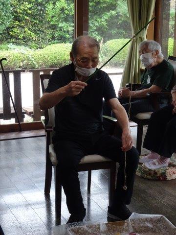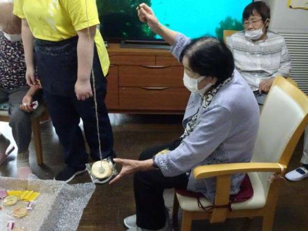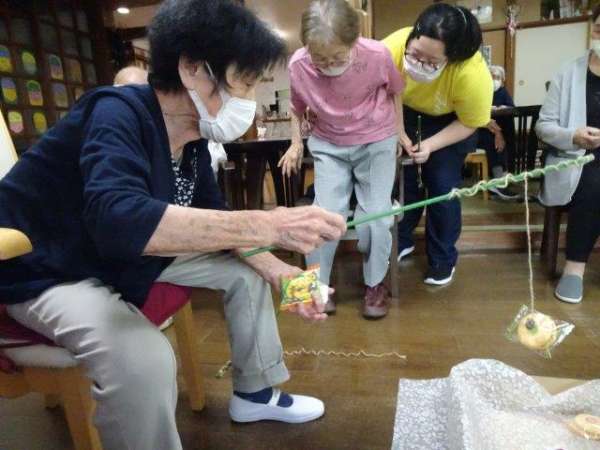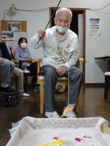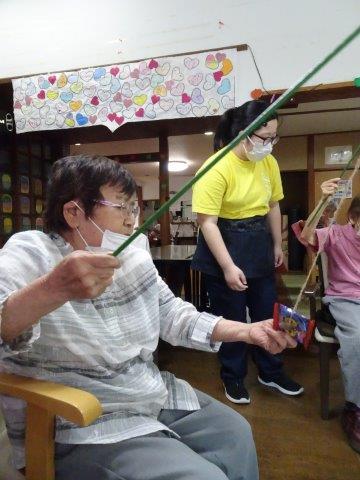 今日のレクレーションは、お菓子という題目で、お菓子釣りをしました!