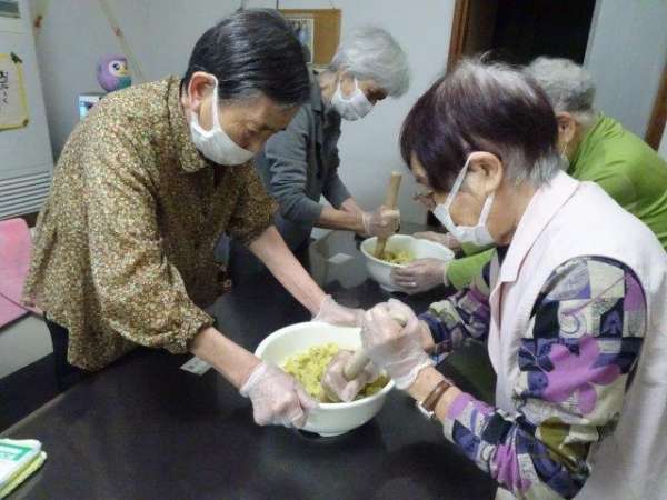 お母様方に、下ごしらえしていただきます