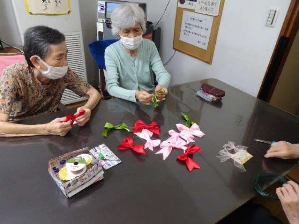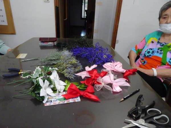 ワンポイントとなるリボンづくりも手際よくあっという間に作って下さるお母様方double exclamation