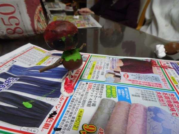 どんぐり人形に、絵の具でお洋服を描きましょう
