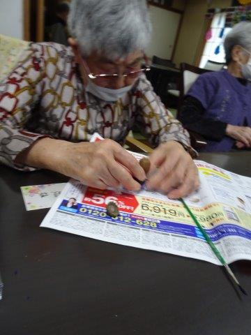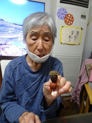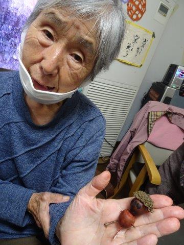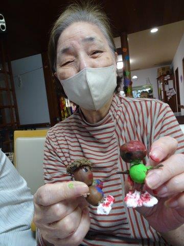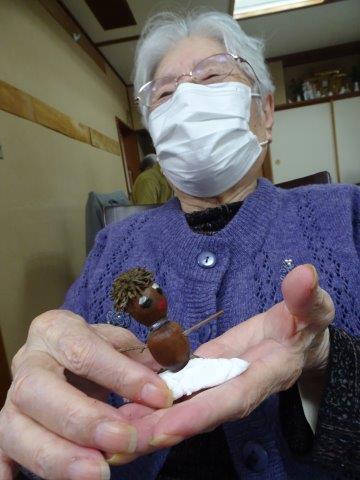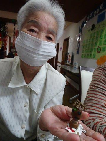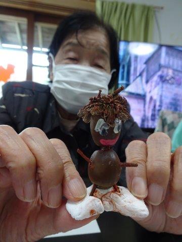 2週間ほど前に、どんぐり人形を作りましたが、その続きをして、今日のレクリエーションで完成さしたいと思います
