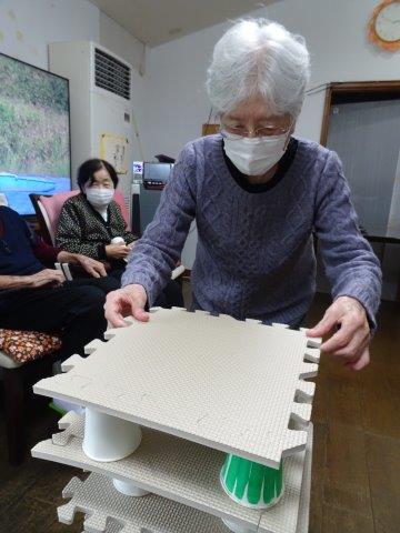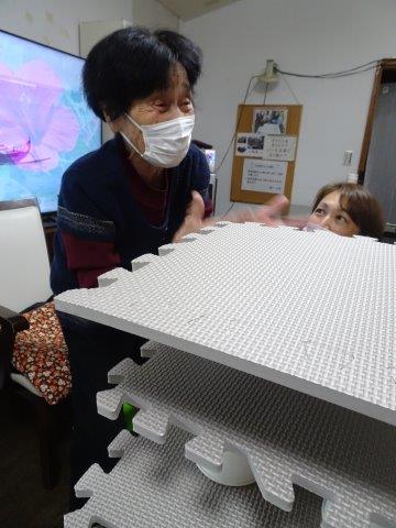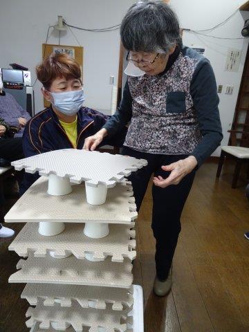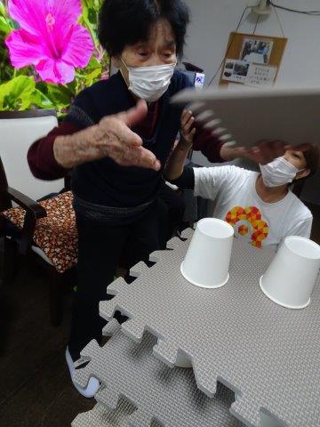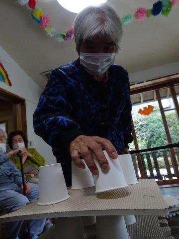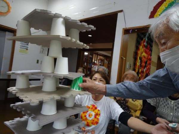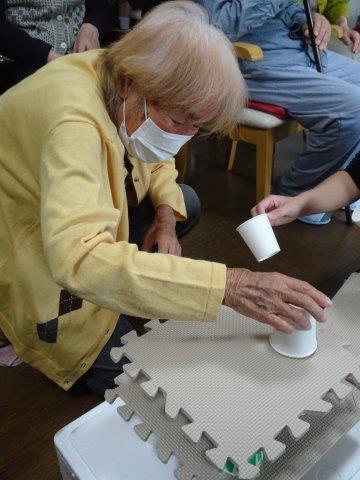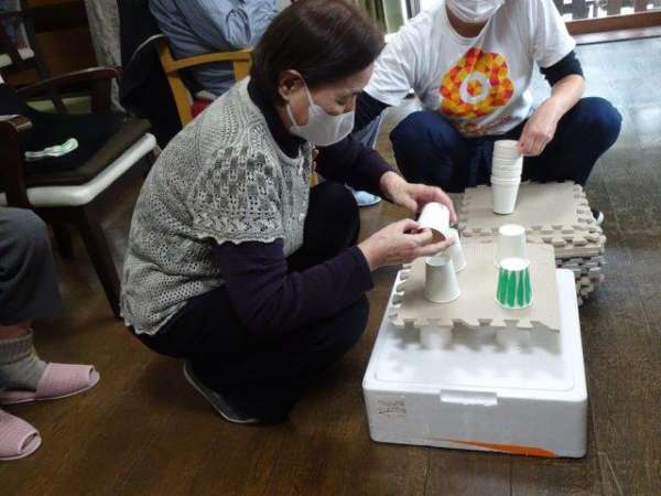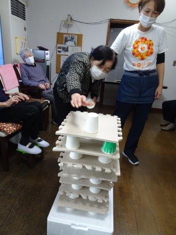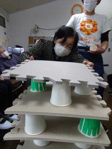 はい、このマットと紙コップを交互に積んでいくゲームですグッド (上向き矢印)