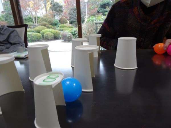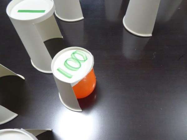 点数付き紙コップに入れるゲームです