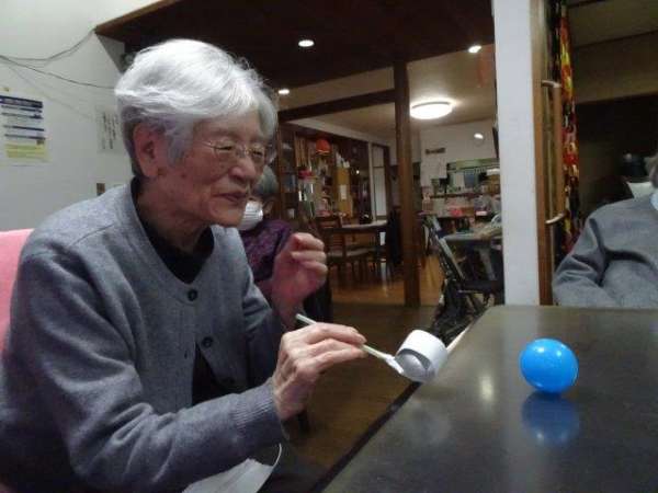 このカップ、ボールの大きさとほぼ同じなので難しいんです