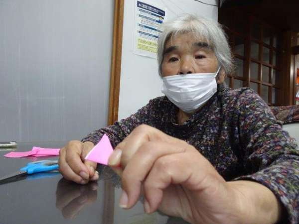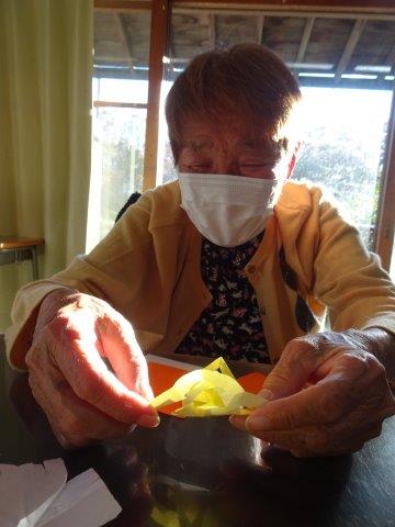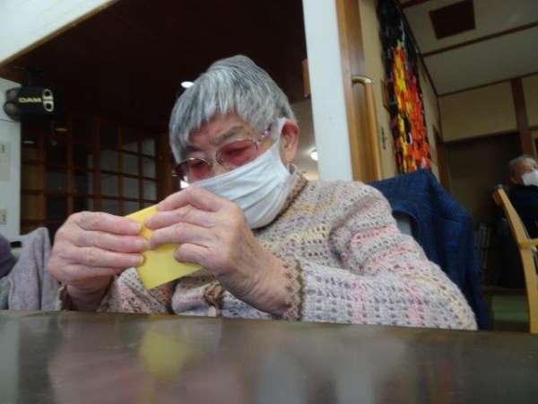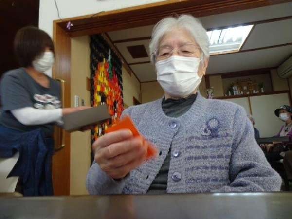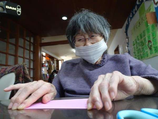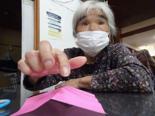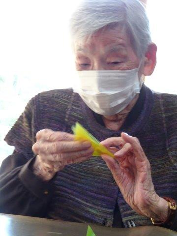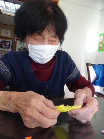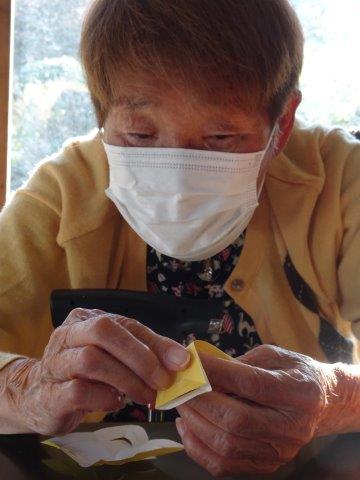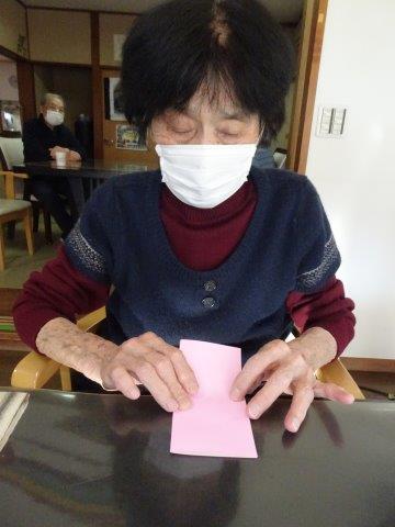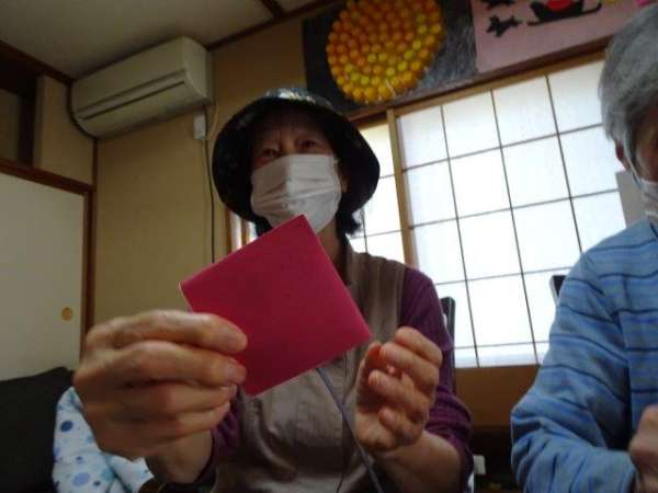お好きな色の折り紙を1枚手に取って・・・