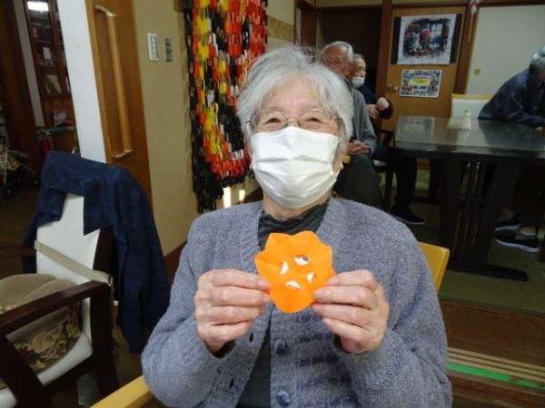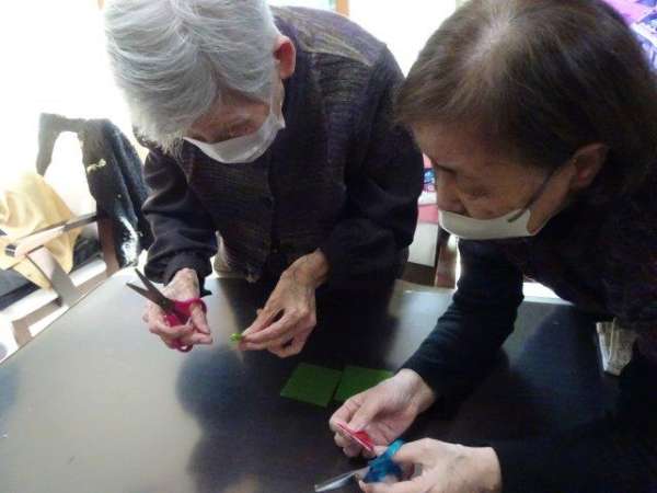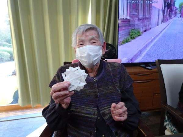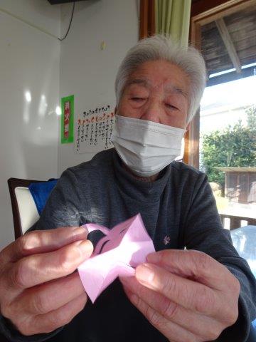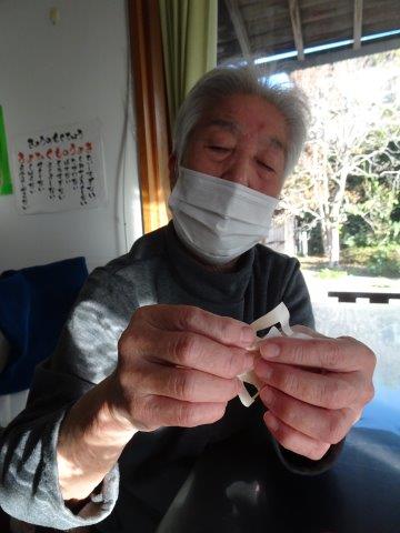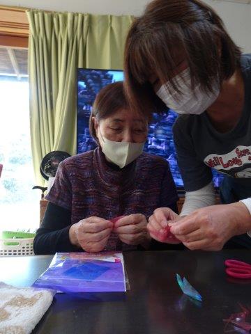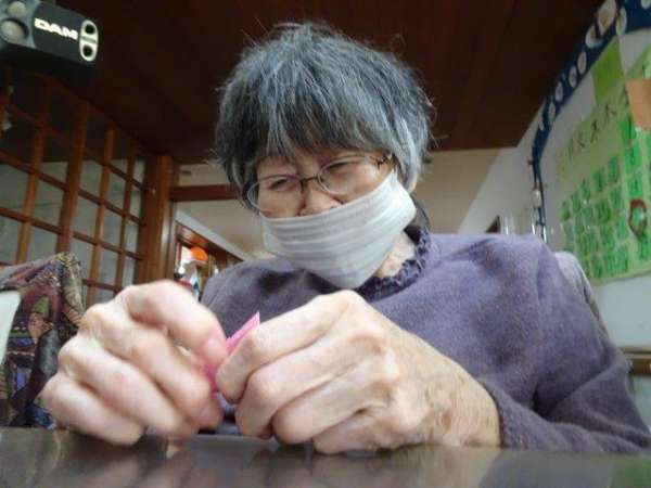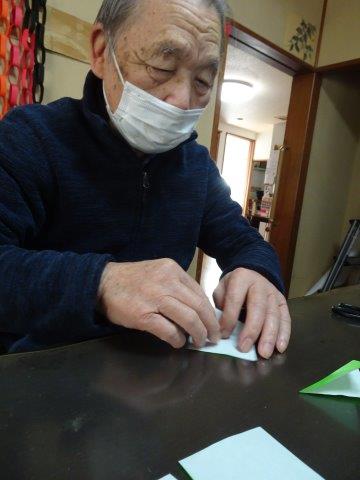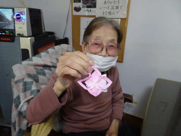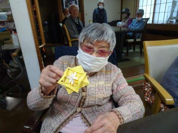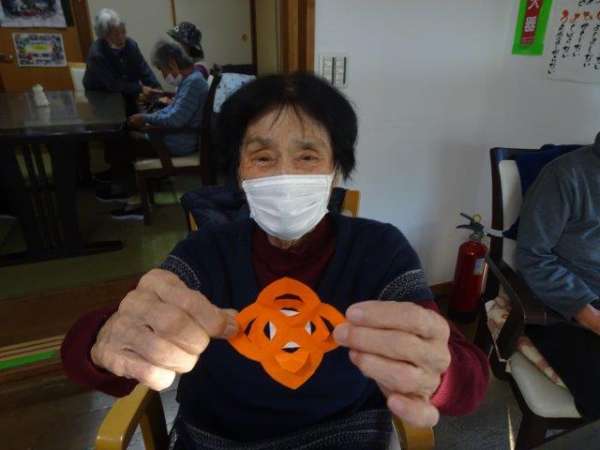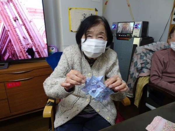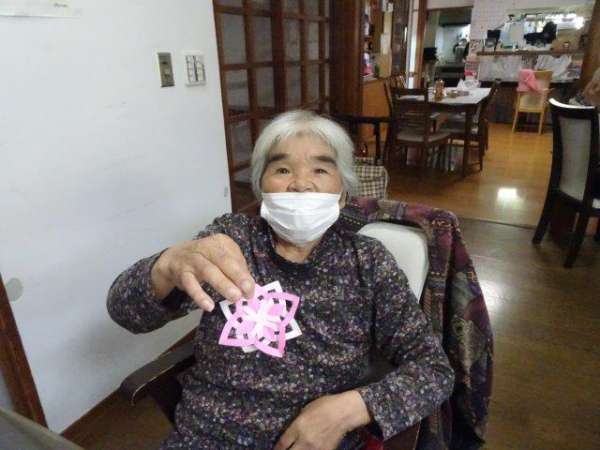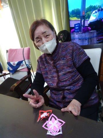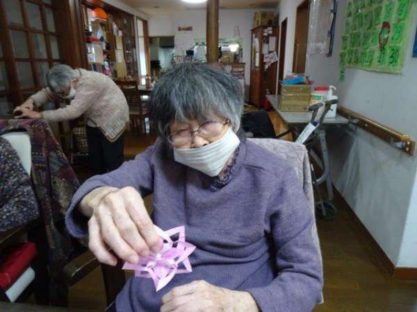 来月は、クリスマスも控えておりますので、本日は、雪の結晶を折り紙で、お父様お母様と作ってみました