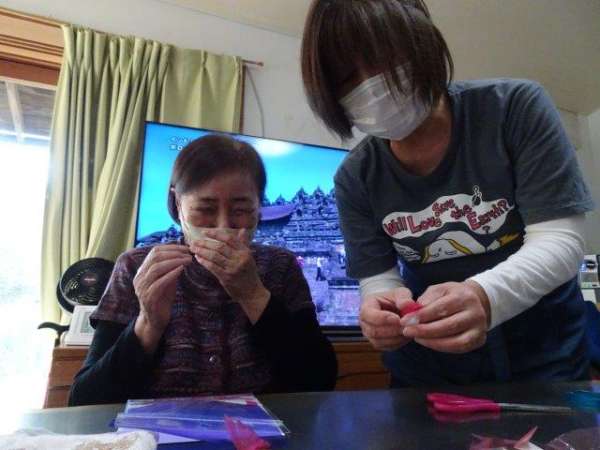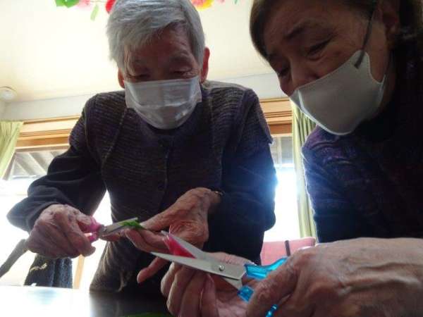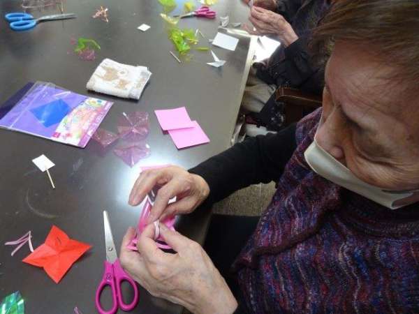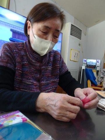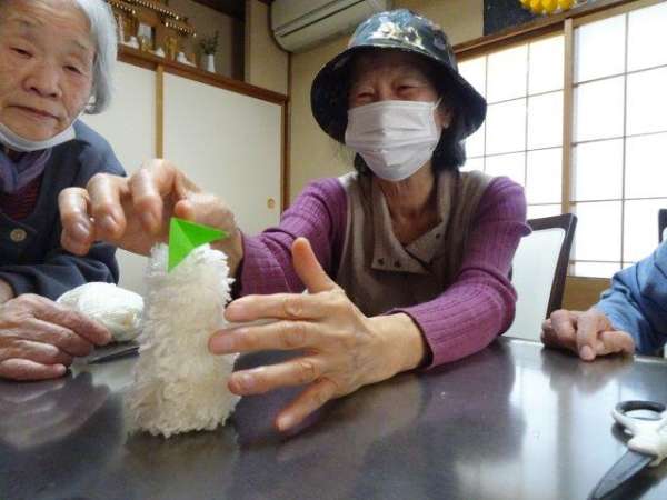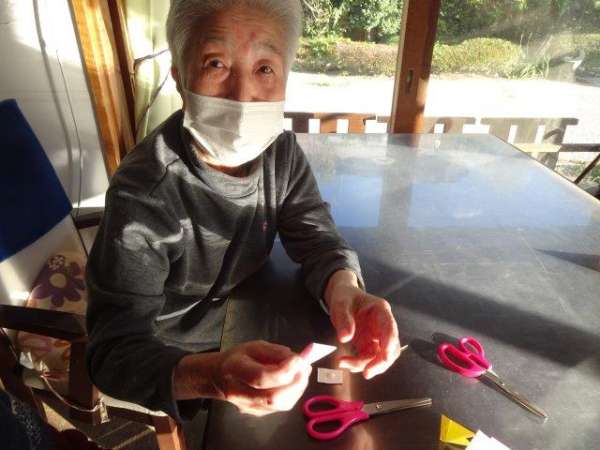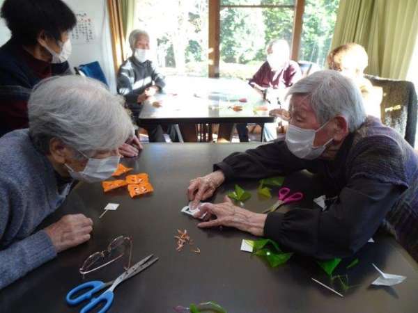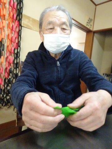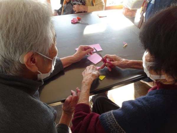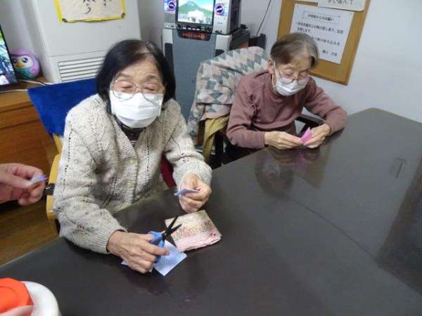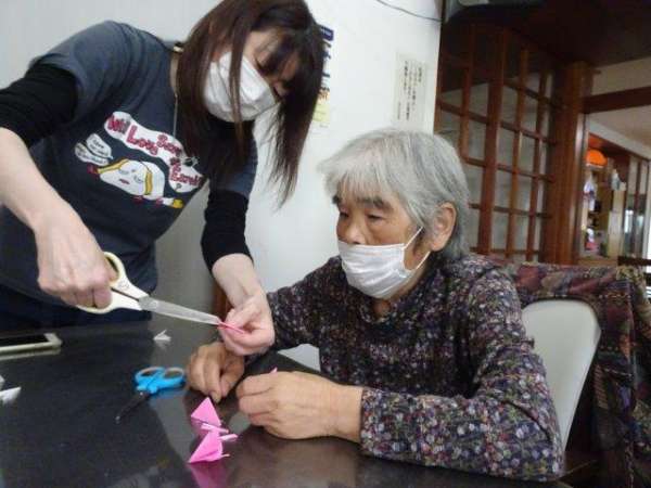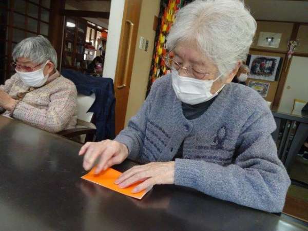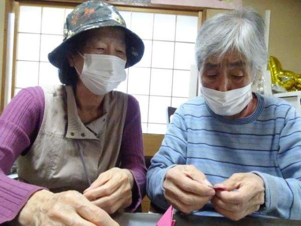 来月は、クリスマスも控えておりますので、本日は、雪の結晶を折り紙で、お父様お母様と作ってみました