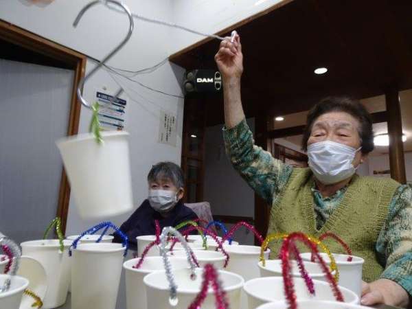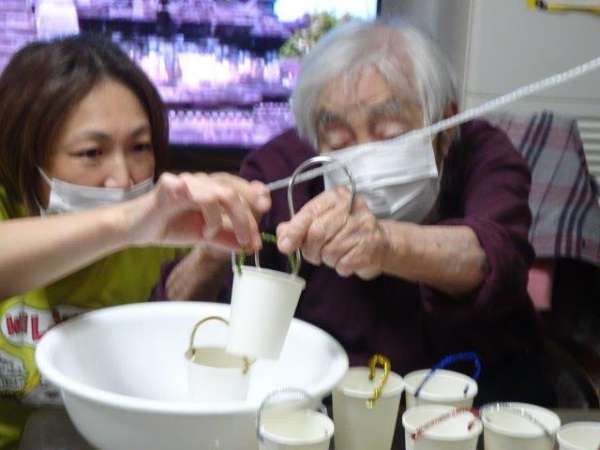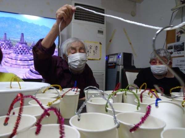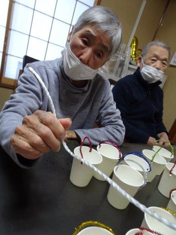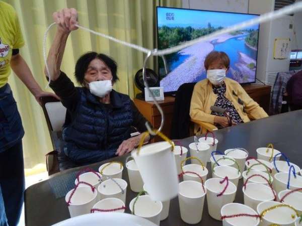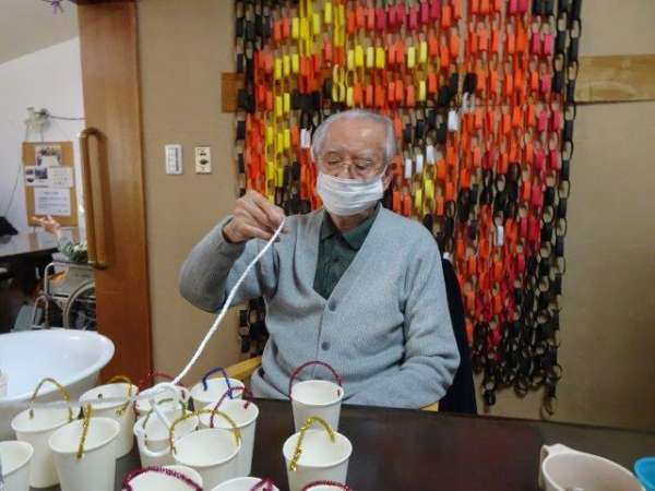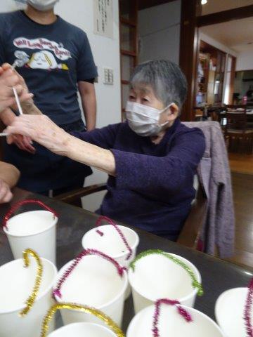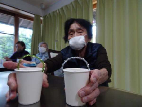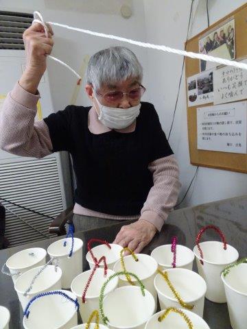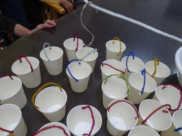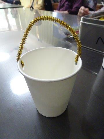 紙コップにモールを付けて、バケツ風にヾ(≧▽≦)ノ