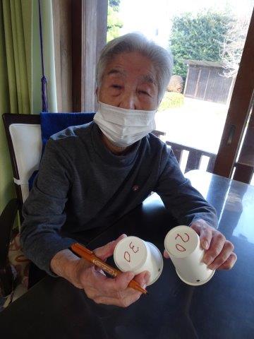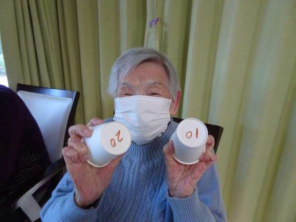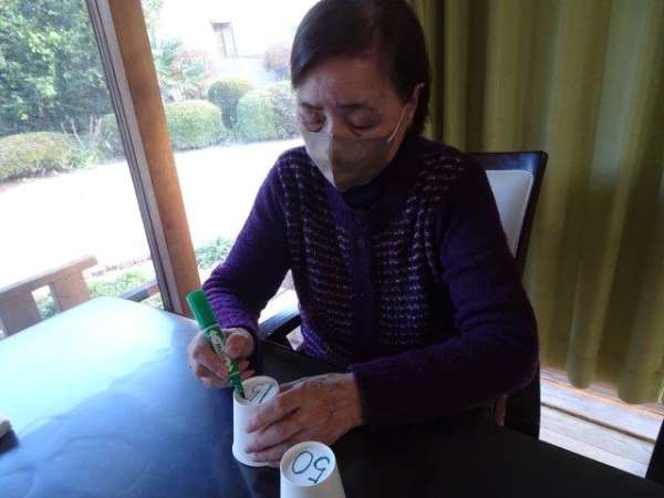 まずは、マジックで紙コップの裏に点数を書いて頂きました