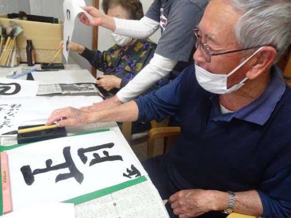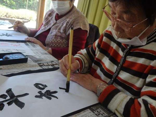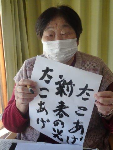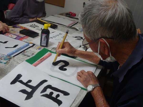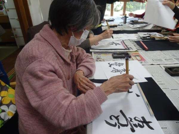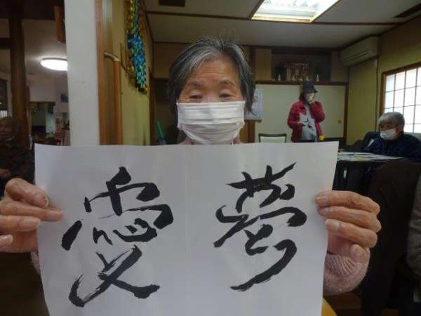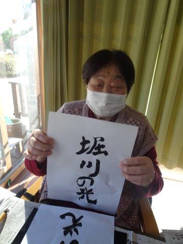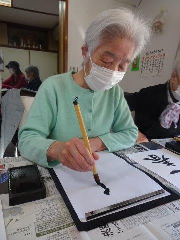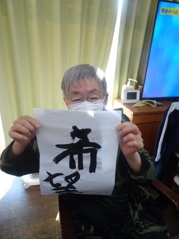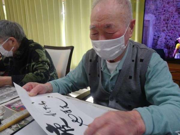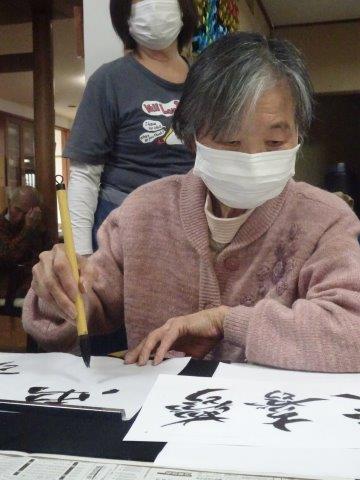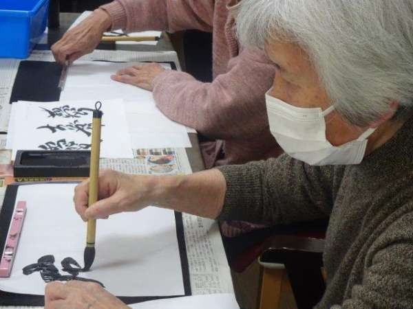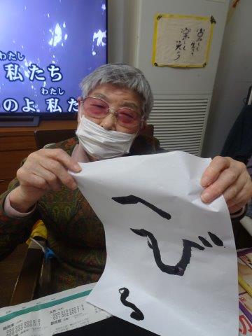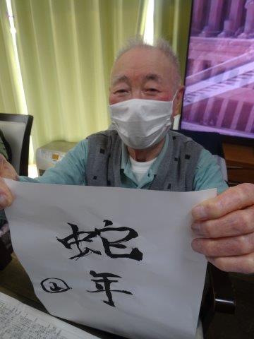 今日のレクレーションでは、「書初め」🖌を行いましたわーい (嬉しい顔)