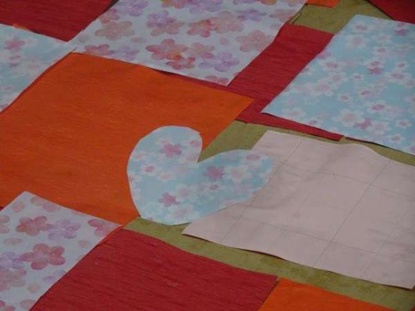 綺麗な紙を色々な形に切り取り、パッチワークのように貼っていきます