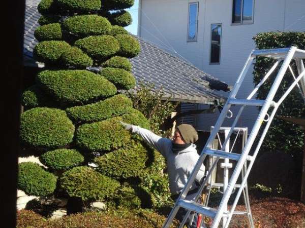 お外では、植木職人の方々が、綺麗に植木を切って下さっております✂