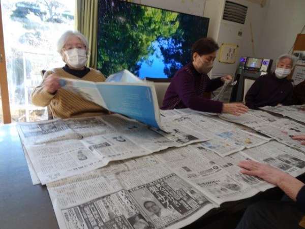 テーブルに新聞紙を敷いて・・・
