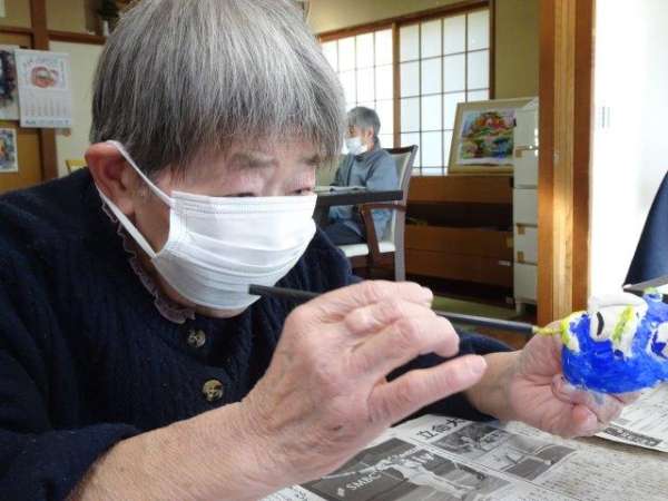 昨日のお面作りの続きをしましょう
