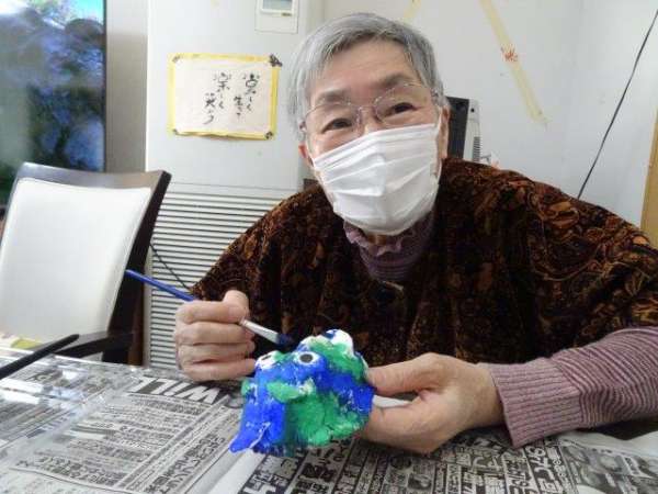 鬼のお面に色を付けていきましょう✒