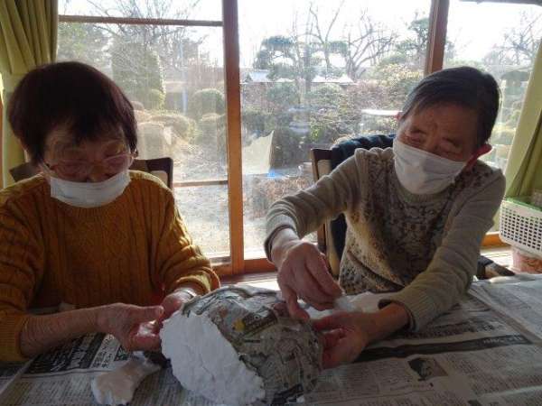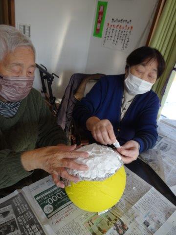 大きなお面作りも、みんなのお力をお借りして作り上げましょうねぇ(*^-^*)