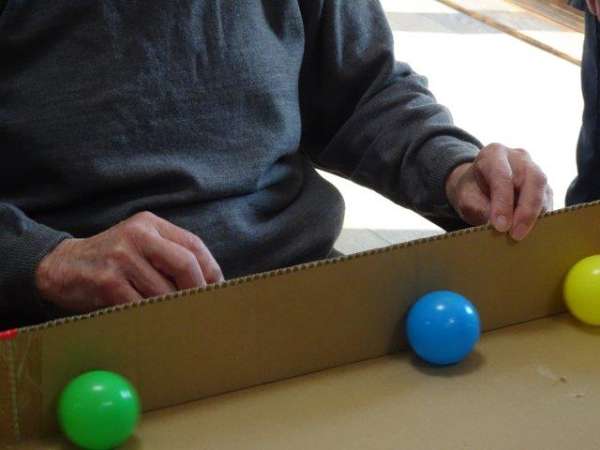 箱に空いた丸い穴にボールを落とすのですが。。。