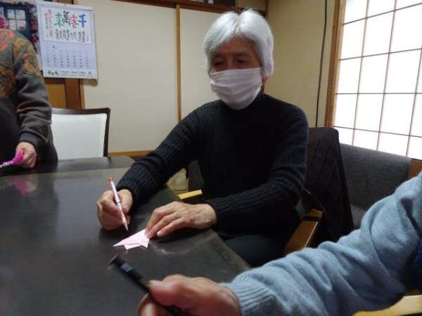 一生懸命にスタッフに聞きながら折って下さっていますね