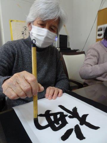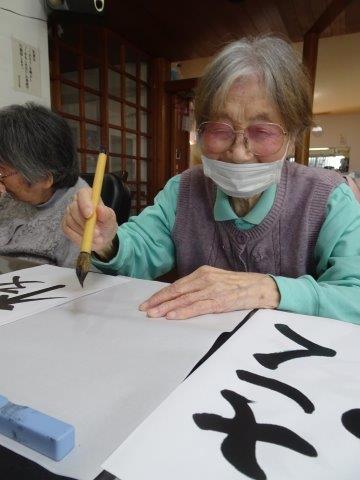 久しぶりの書道を集中して書いて下さいました