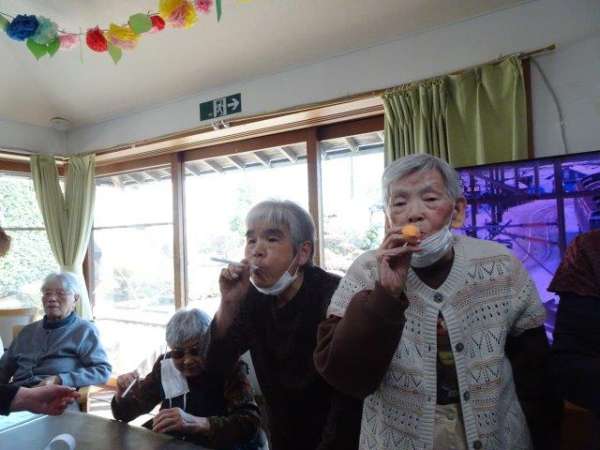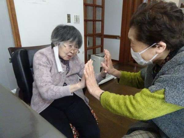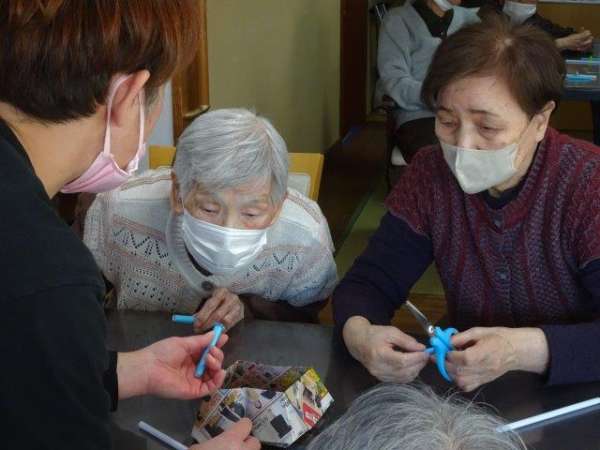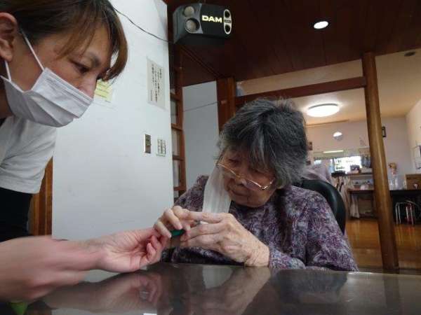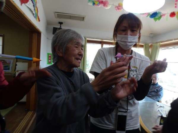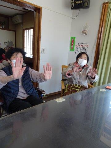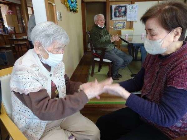 機能訓練や体操の中に、懐かしい手遊びが取り入れられていました