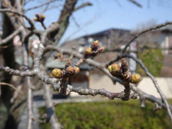 桜の蕾はというと、大きくなってきているもののピンクの花びらが見えてくるには至っていません