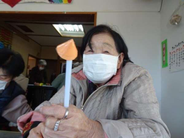 少し変わった形のごみ箱に興味を持たれたお母様が、作ってきてくださる方に教わっています(*^-^*)