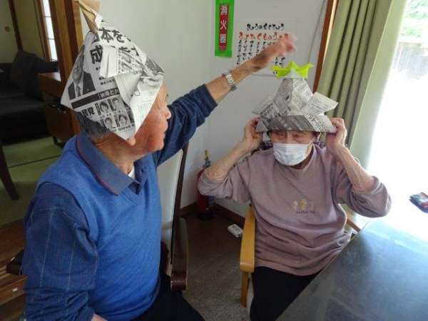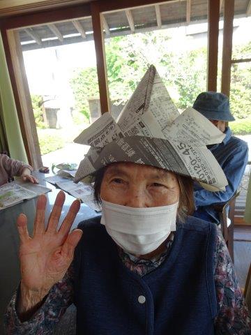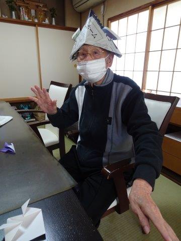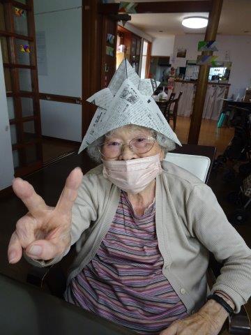 小さな兜の折り紙、皆様折ることが出来ました、お次は頭に被れる大きさの兜を折ってみましょう(#^^#)
