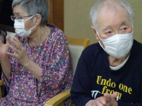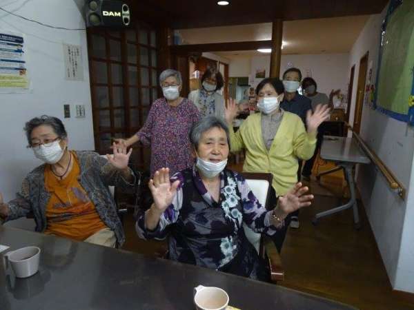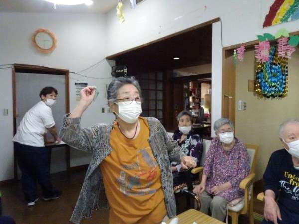 今日のレクリエーションは、ダーツをするのでその前に身体を動かしストレッチ体操をしました