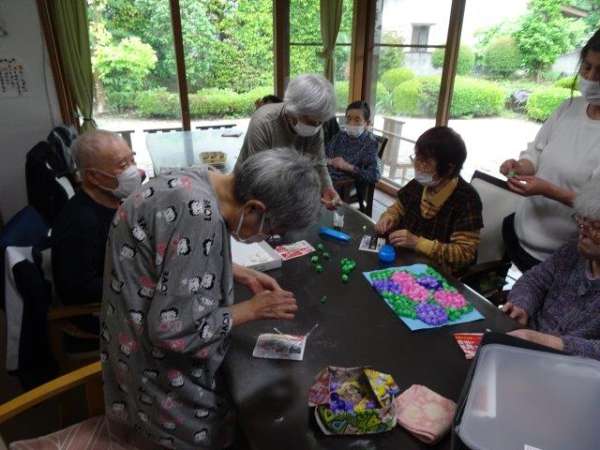 今日のレクリエーションは、梅雨作品の続きをしましたぴかぴか (新しい)ぴかぴか (新しい)