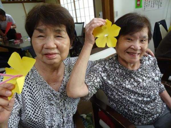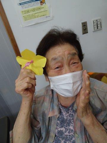 今日のレクリエーションは、ハイビスカスを作っていきましょう