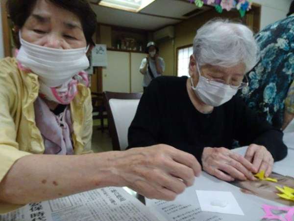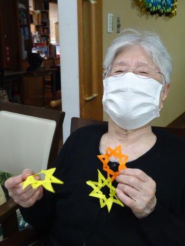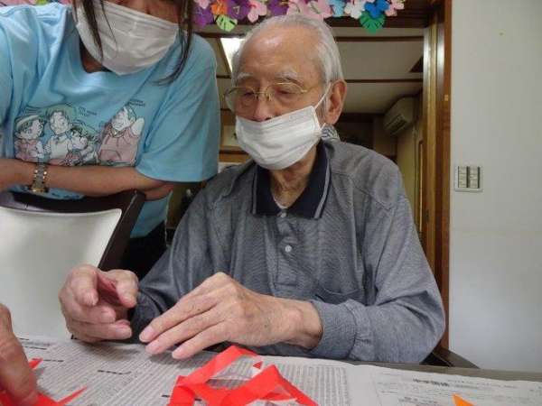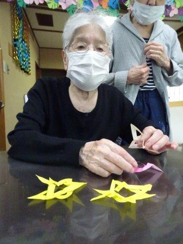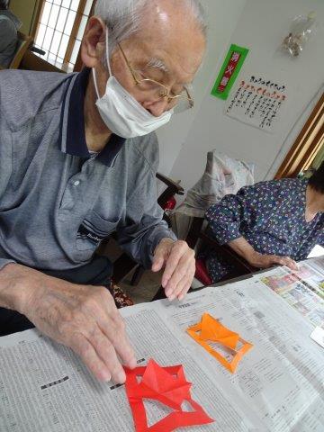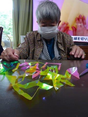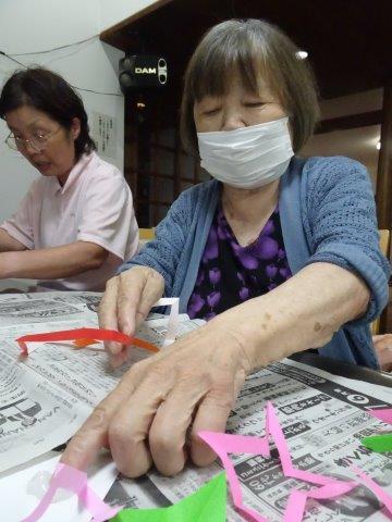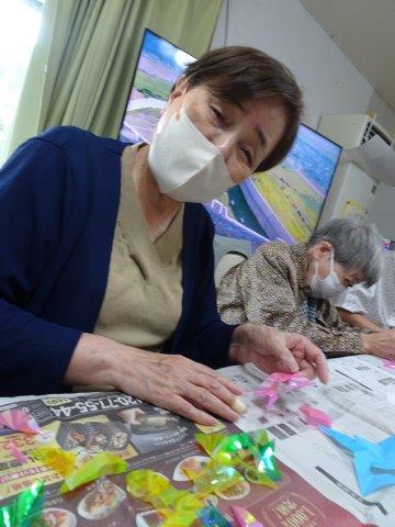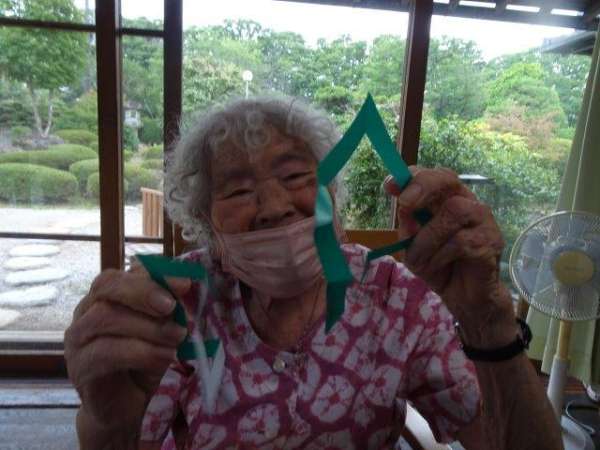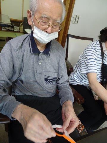 今日のレクリエーションは、もうじき七夕様なので飾りを作りましょうね