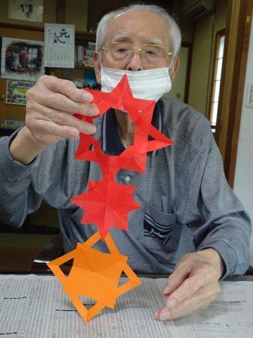折り紙を折ったり切ったりこれがどのように変化していくのか楽しみですね