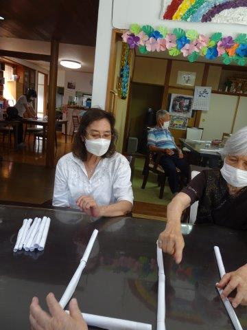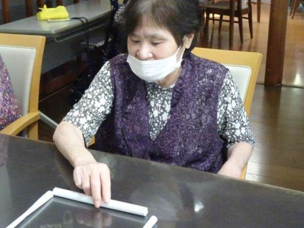 それでは、今日のレクリエーション「脳トレ」の準備をお願いしまーすm(_ _”m)