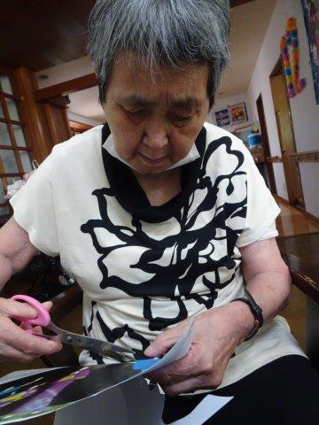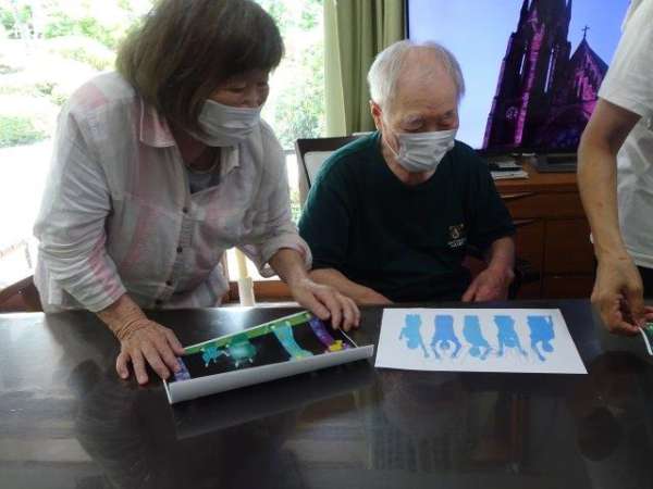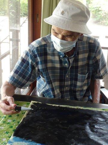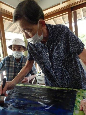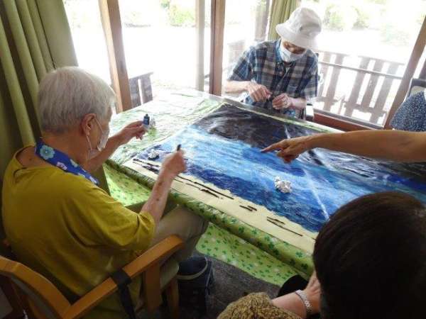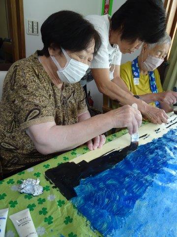 こちらのテーブルでは、模造紙一面を塗りたくっておられますほっとした顔