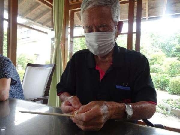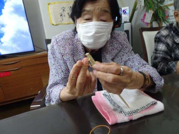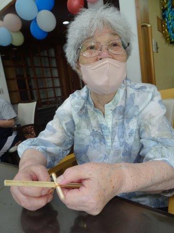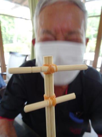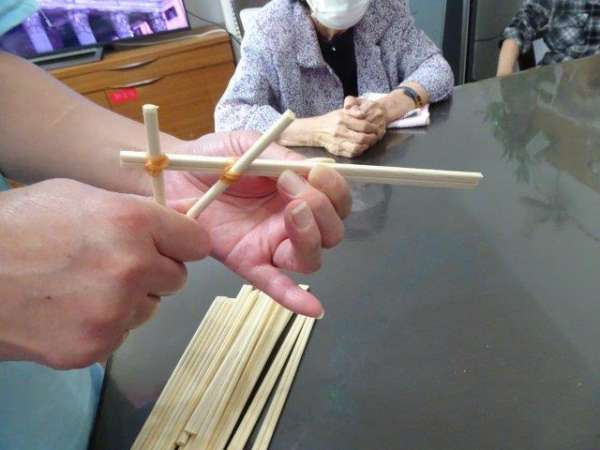 材料が配られましたが、皆様苦戦のご様子あせあせ (飛び散る汗)あせあせ (飛び散る汗)