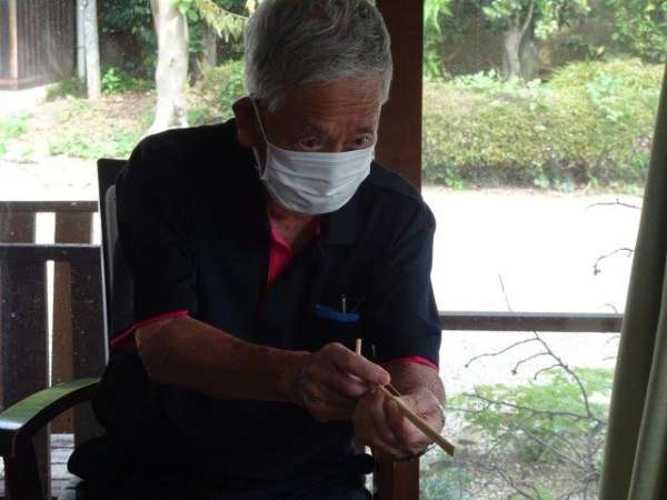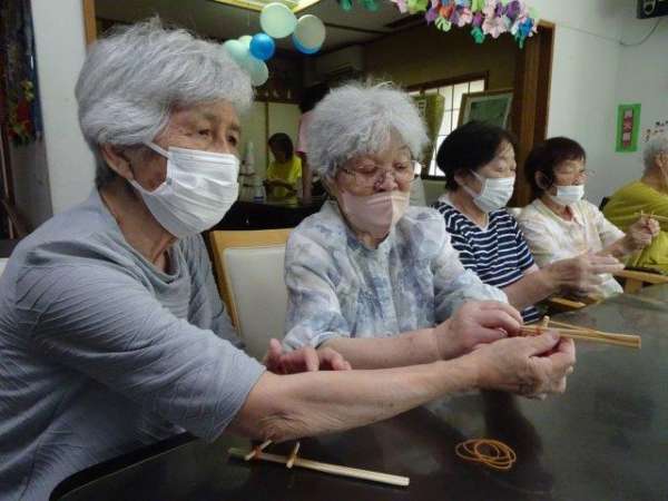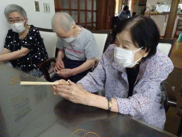 固く結わくのが大変なようなのでスタッフもお手伝い手 (パー)