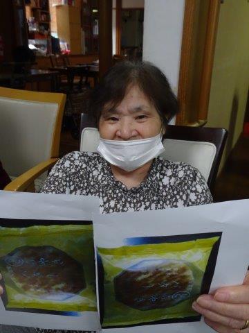 お菓子の絵を見つめるお母様。。。